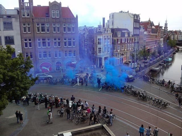 Every first Monday of the month at 12:00 Noon (CET) precise (!), Prof. Russolo & His Noise Intoners appear for 100 seconds at the Koningsplein (King's Square), Amsterdam and surprise online TVRussolo viewers, bystanders and themselves with a happy, dadaist and always different performance/Russoliade.
