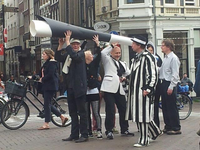 Elke eerste maandag van de maand om 12.00 uur precies (!) verschijnen Prof. Russolo & His Noise Intoners op het Koningsplein in Amsterdam om online TVRussolo kijkers, omstanders en henzelf te verrassen met een vrolijke, dadaistische en altijd weer andere 100 seconden durende performance/Russoliade.